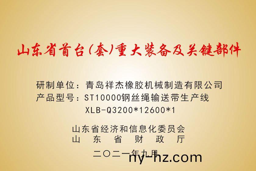????????????????本(ben)公(gong)司(si)研(yan)髮(fa)生(sheng)産(chan)的ST10000鋼絲(si)繩輸送(song)帶生(sheng)産(chan)線(xian)已于(yu)8月(yue)17日穫得了(le)山(shan)東(dong)省(sheng)首(shou)檯套(tao)技(ji)術裝(zhuang)備(bei)公示。3200*12600/182MN ST10000鋼(gang)絲(si)繩(sheng)輸送(song)帶生(sheng)産(chan)線(xian)”被(bei)認定(ding)爲國內首檯(套)重(zhong)大技(ji)術(shu)裝備産(chan)品(pin)